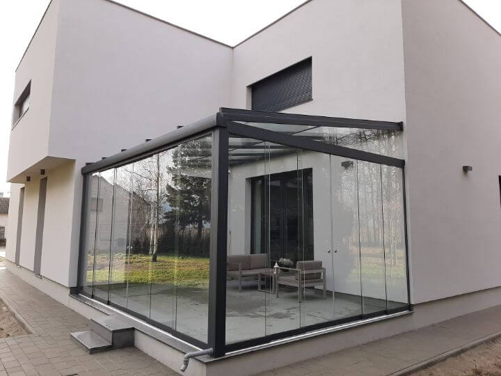 Wśród udogodnień oferowanych w ramach dachów Murano należy także wspomnieć o możliwości wykorzystania ich do stworzenia zamkniętej przestrzeni, np. w formie ogrodu zimowego. Wszystko dzięki opcji zabudowania konstrukcji szklanymi ścianami chroniącymi przed wiatrem i pozwalającymi zyskać outdoorową strefę relaksu, która będzie przedłużeniem domu. Przeszklenia występują w wersji stałej albo przesuwnej – te ostatnie charakteryzują się cichą, bezproblemową pracą za sprawą zastosowania wysokiej jakości łożysk kulkowych i zakrytych rolek jezdnych.