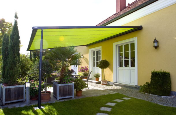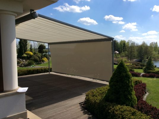 Pergola ze zwijanym dachem z materiału