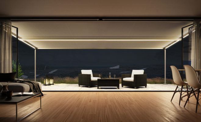 - System oświetlenia LED: Wbudowany w konstrukcję, umożliwia korzystanie z tarasu także wieczorami.