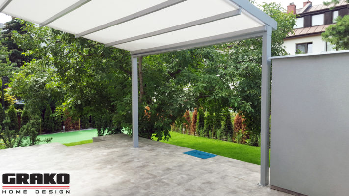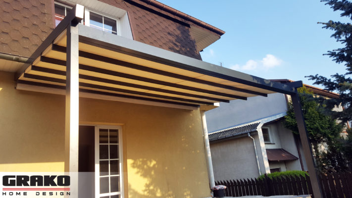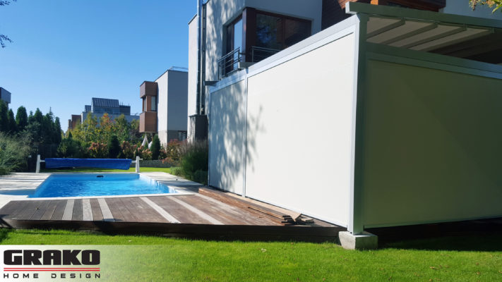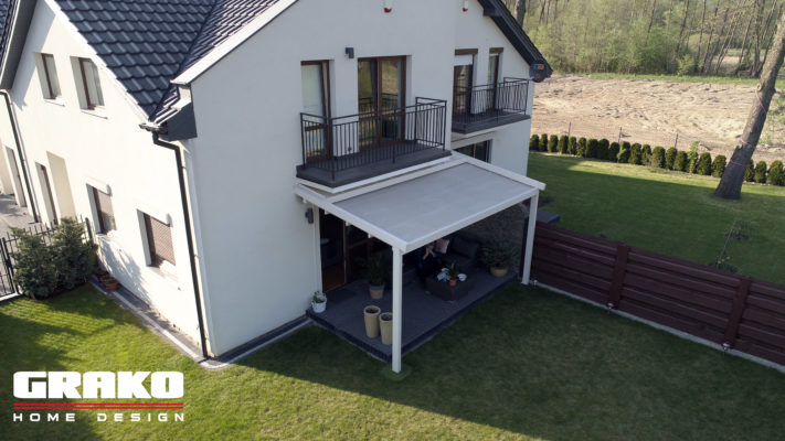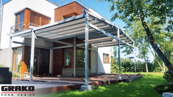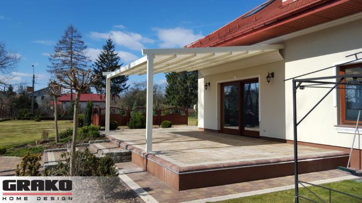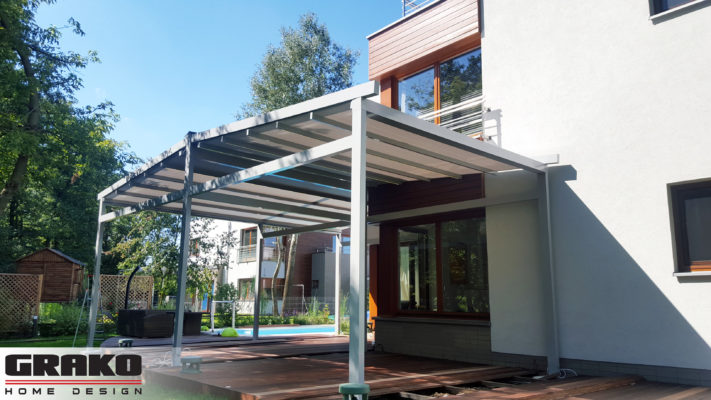 Mocowana do ściany budynku, idealna do tarasów wychodzących bezpośrednio z domu. Zapewnia harmonijne połączenie przestrzeni wewnętrznej z zewnętrzną. - Pergola wolnostojąca