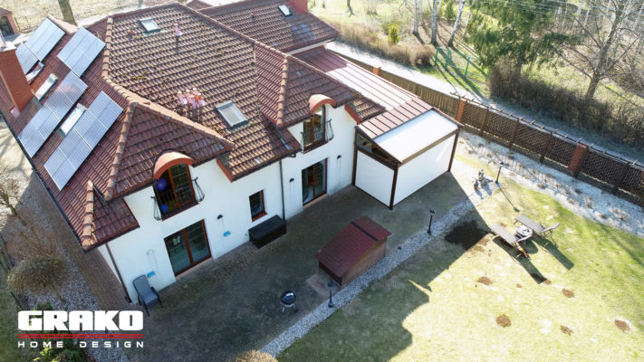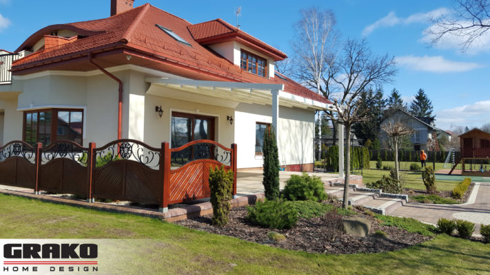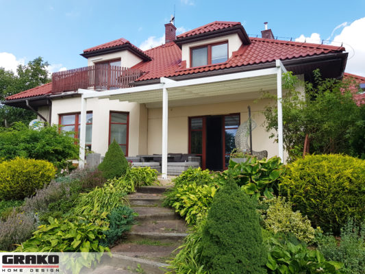 Zadaszenie tarasu umożliwia organizację spotkań i kolacji na świeżym powietrzu bez względu na pogodę. - Stylowe wykończenie tarasu
