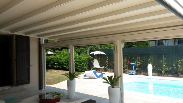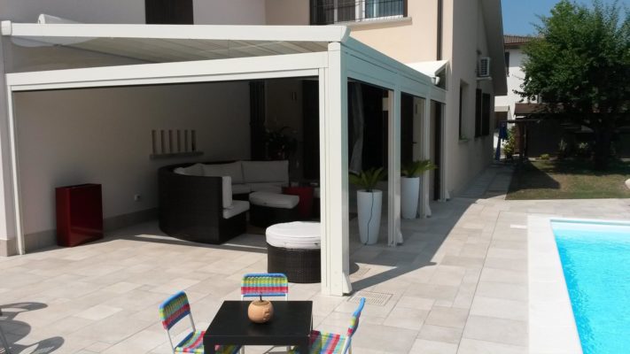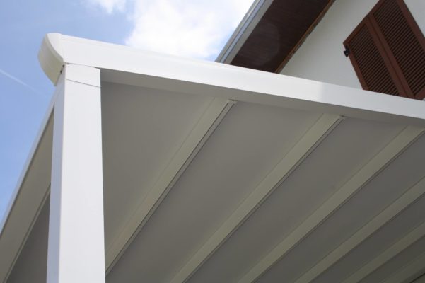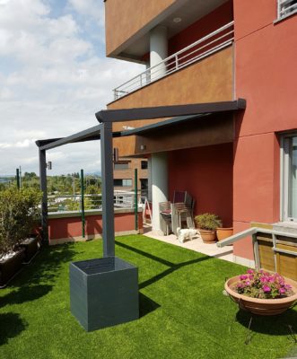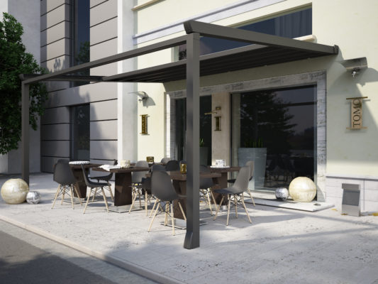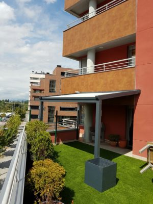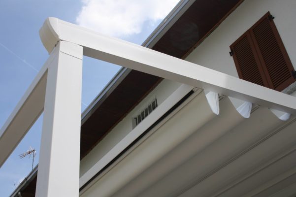 System rynien w elementach pionowych, nowoczesne sterowanie elektryczne, oraz subtelne detale wykończenia to tylko początek świetnych funkcji, jakie oferuje pergola Top Ghost. Dzięki nieznacznemu nachyleniu daszku, pergola doskonale oddaje wrażenie przestronności, tworząc taras przypominający dodatkowy pokój dzienny, w którym można cieszyć się spokojem i komfortem przez cały rok. Jej montaż jest wyjątkowo prosty, a niewielki profil mocowany do ściany pozwala na zastosowanie jej nawet na nietypowych elewacjach, co czyni ją idealnym rozwiązaniem do przestrzeni o nietypowej architekturze. Subtelne prowadnice skutecznie rozciągają tkaninę, zapewniając równocześnie estetyczny wygląd i funkcjonalność. W przypadku zwinięcia tkaniny, całość ukrywa się dyskretnie w profilu przyściennym, co pozwala na zachowanie czystej i eleganckiej formy pergoli, nie zakłócając harmonii przestrzeni. Dzięki nowoczesnym rozwiązaniom, pergola Top Ghost nie tylko zapewnia ochronę przed słońcem i deszczem, ale także wprowadza do ogrodu elegancki, śródziemnomorski klimat, który doskonale komponuje się z różnorodnymi stylami architektonicznymi.
